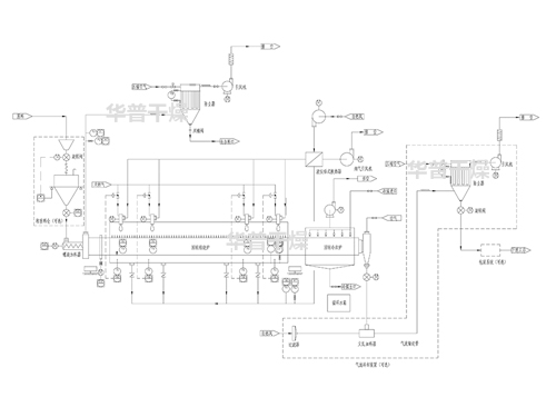 • 閃蒸干燥系統(tǒng)+回轉(zhuǎn)焙燒爐系統(tǒng)+冷卻輸送系統(tǒng)